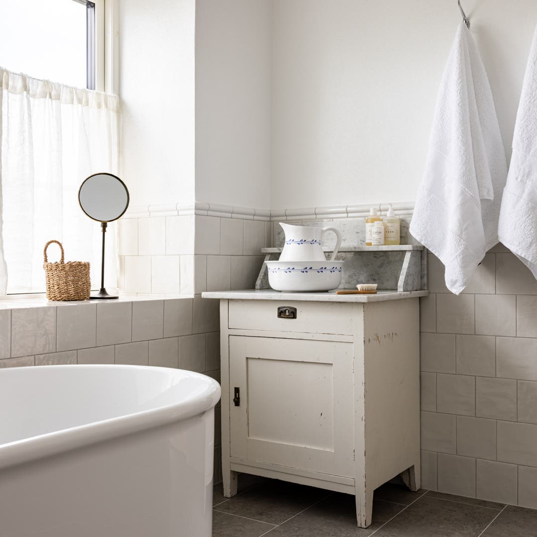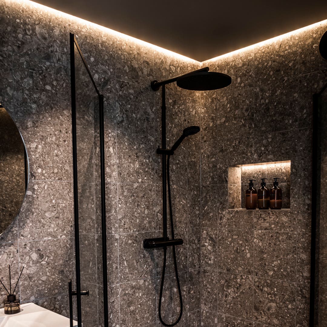 Klinkern Jura sätter tonen i Villa Luminas badrum