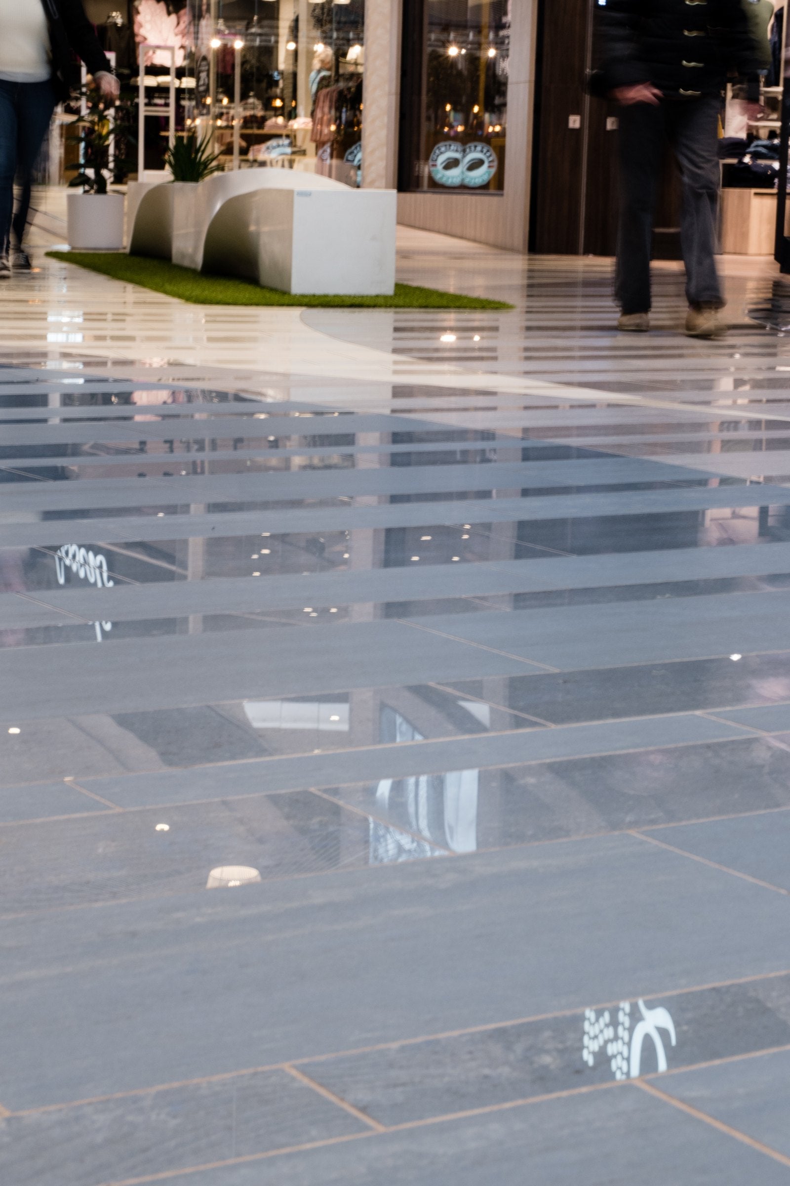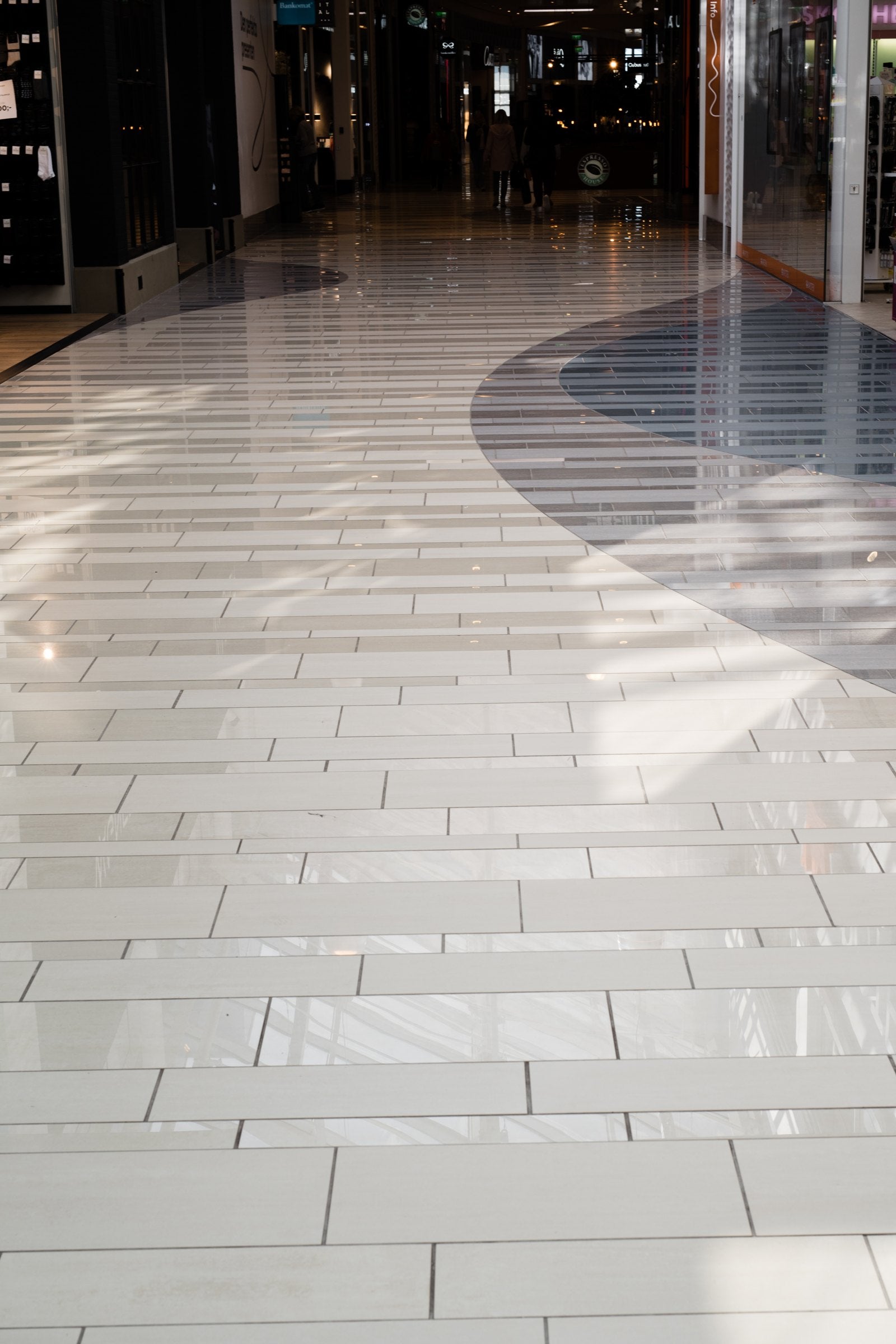 Golv: Serien Marte har används i olika kulörer, storlekar och ytor. (Marte Azul Bahia, Marte Raggio Di Luna och Marte Botticino i storlekarna 10x60, 20x60, 30x60 cm i ytorna natural och polerad).