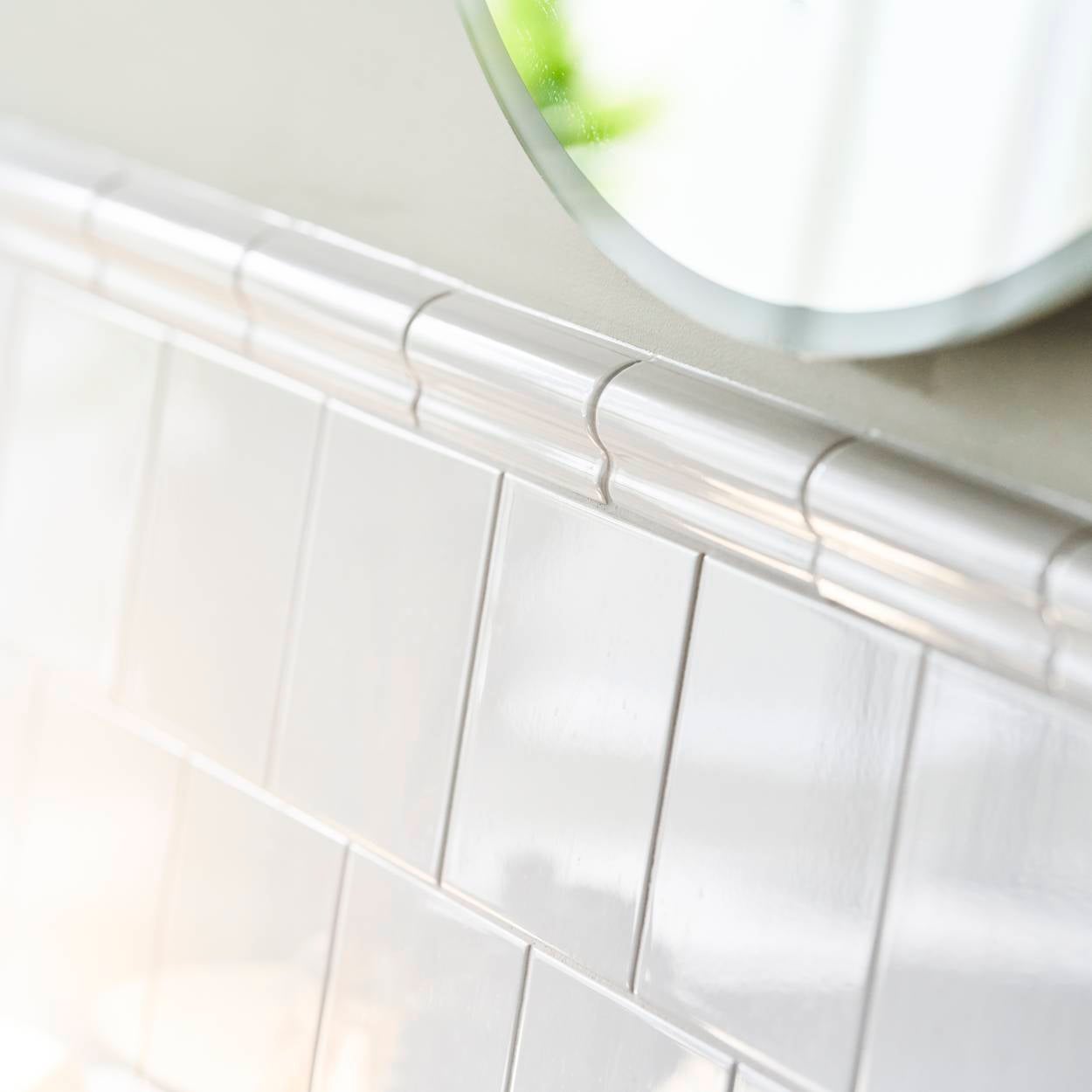 Ett vitt blankt kakel som ingår i den klassiska och mycket eleganta serien Evolution. I serien ingår kakelplatta, bårder och sockel. Välj seriens alla delar för att skapa en elegant sekelskiftesstil. Ett tips är att kakla halva väggen för att sedan bryta av med en av seriens vackra bårder.