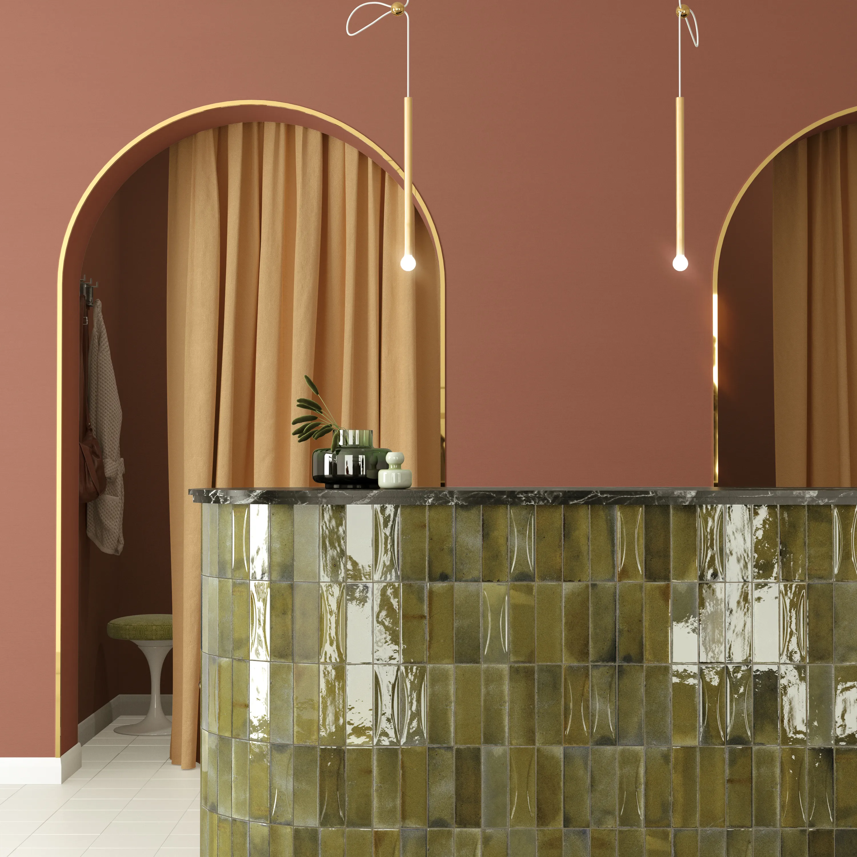 Tillför känsla och karaktär till dina väggar med kaklet Hanoi. Kraftfulla färger med mycket nyansskiftningar och dekorativa glasyrstänk är utmärkande för Hanoi. Ytan är blank och oregelbunden vilket ger en känsla av hantverk och tradition.
