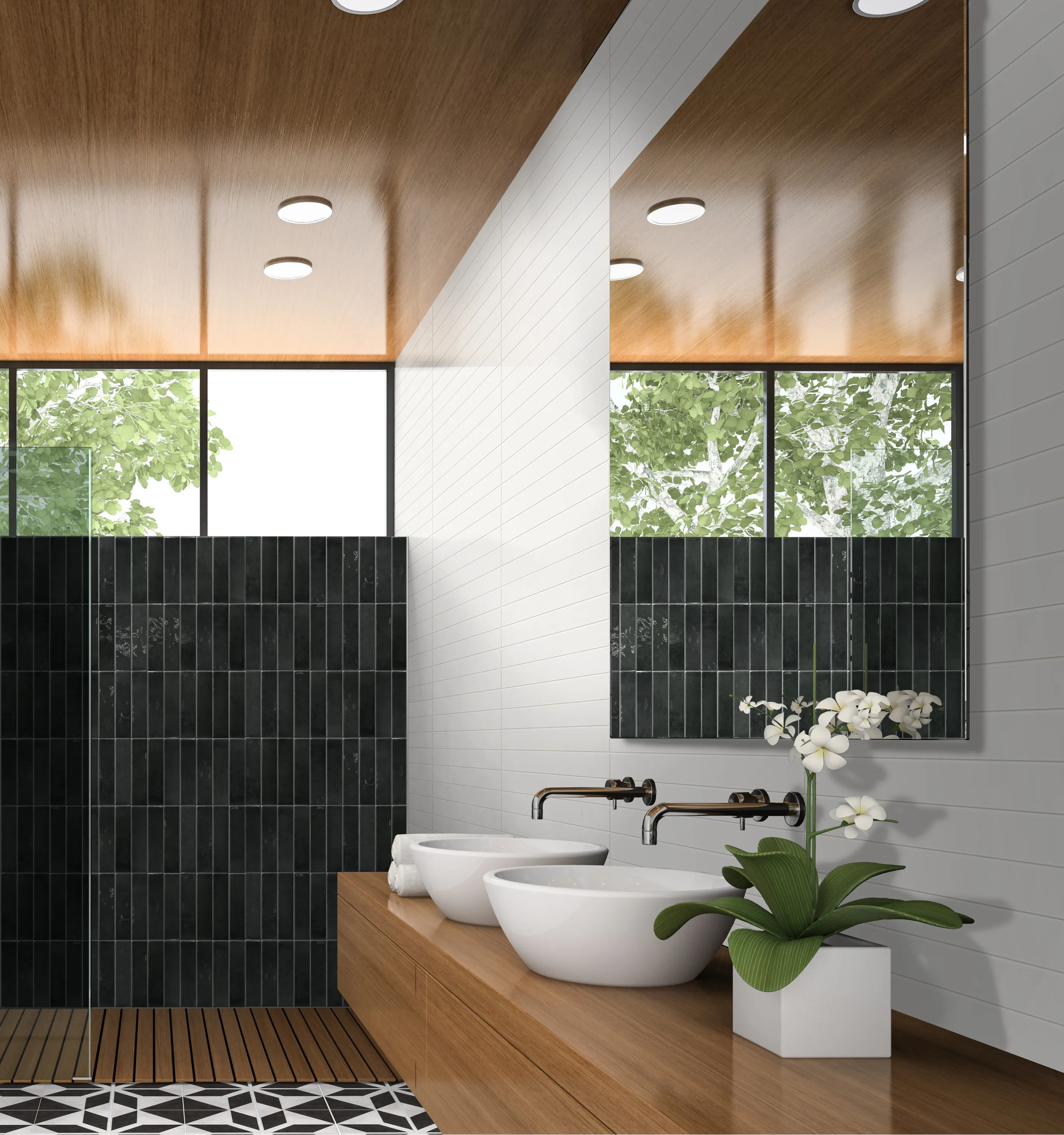 Svart glaserad klinker med en rustik och handgjord känsla. Ytan är oregelbunden och färgen skiftar i intensitet och nyans. Det långsmala formatet, 6x25 cm, öppnar upp för att skapa kreativa mönster och du kan också mixa olika kulörer från serien för att skapa effekter.