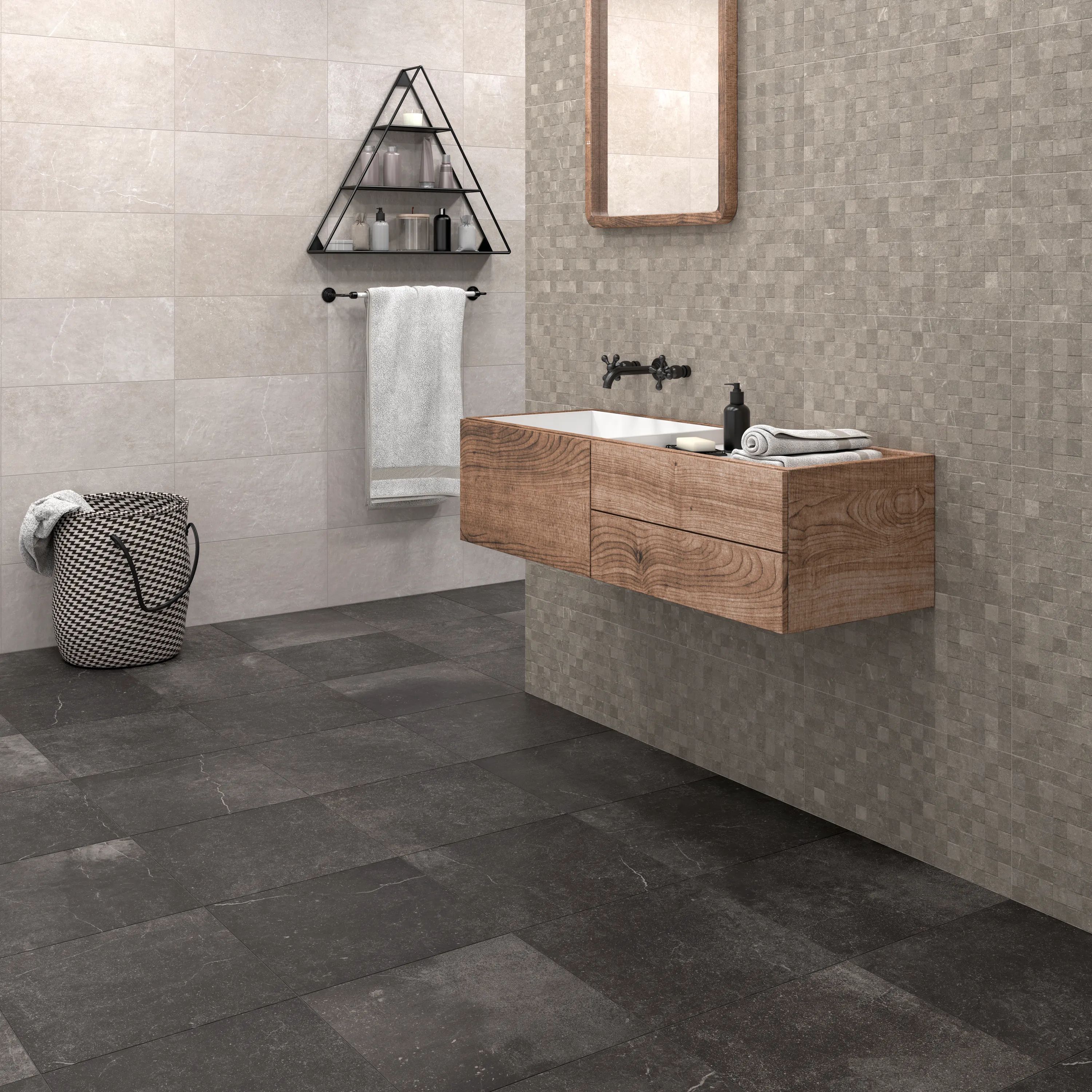 Svart klinker för hemmets alla rum. Klinkern är inspirerad av Piasentina-stenar och har ett naturligt slitage, mjuka ådringar och en matt, något strukturerad yta med en rik konsistens. Finns i flera format och färger.