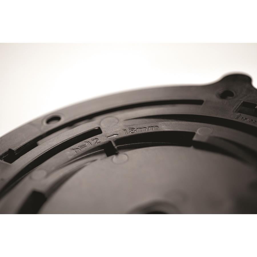 Piedestal för installation av 2 cm tjock utomhusklinker. Används när 12-18 mm höjdjustering krävs. Piedestalen är enkel att justera och möjliggör snabb och robust installation. Monteras alltid tillsammans med distanskryss och dämpare.