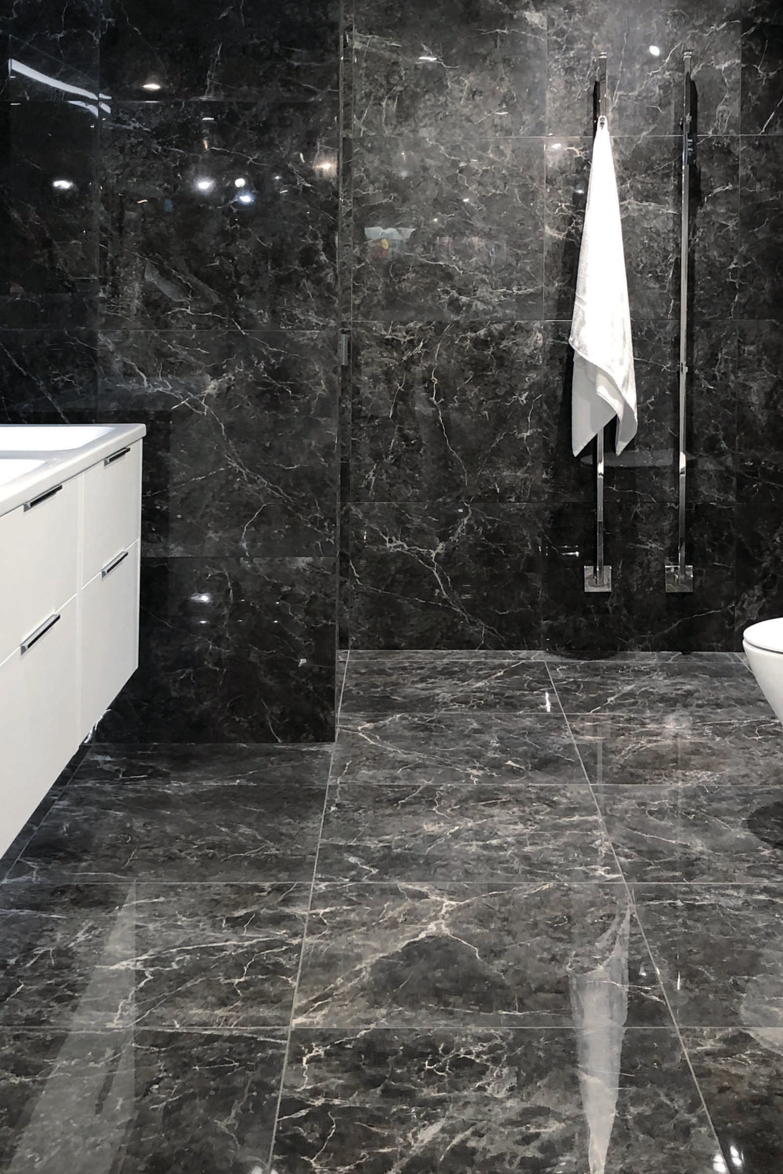 Boutique är en sofistikerad serie marmormönstrad klinker som kombinerar klassisk stil med modern lyx. Den blanka ytan och de rektifierade kanterna ger ett exklusivt intryck och gör det möjligt att sätta plattorna med minimal fog för ett enhetligt helhetsintryck, både på golv och vägg. Serien finns i tre eleganta färger: vit, grå och svart, alla med en blank yta och detaljerade marmoreringar.
