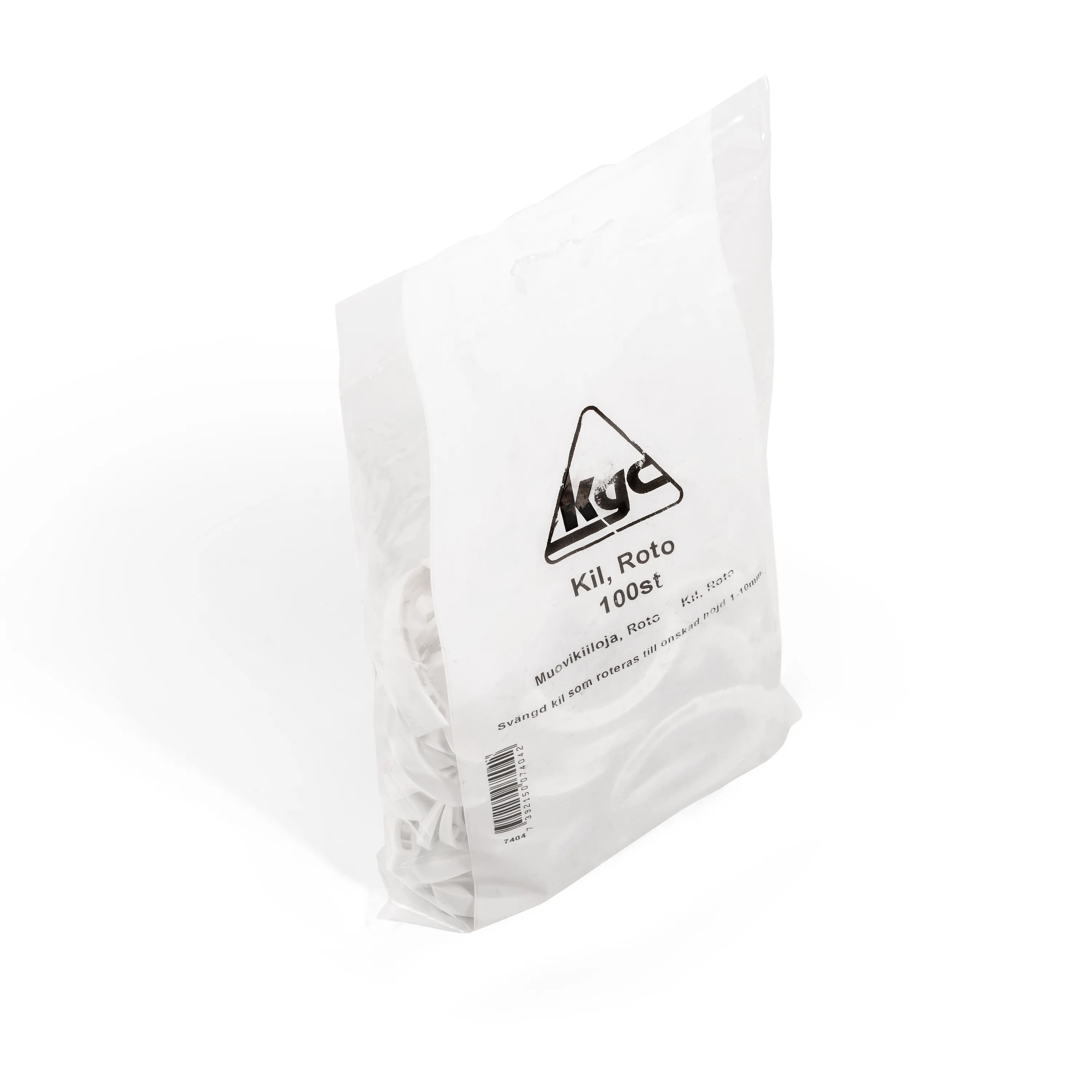 Roterbar kil. Kilen roteras till önskad höjd mellan 1-10 mm. Mycket enkel att använda och en stor fördel mot raka kilar att man slipper klippa av kilen när den bottnar. 100 st i en påse.