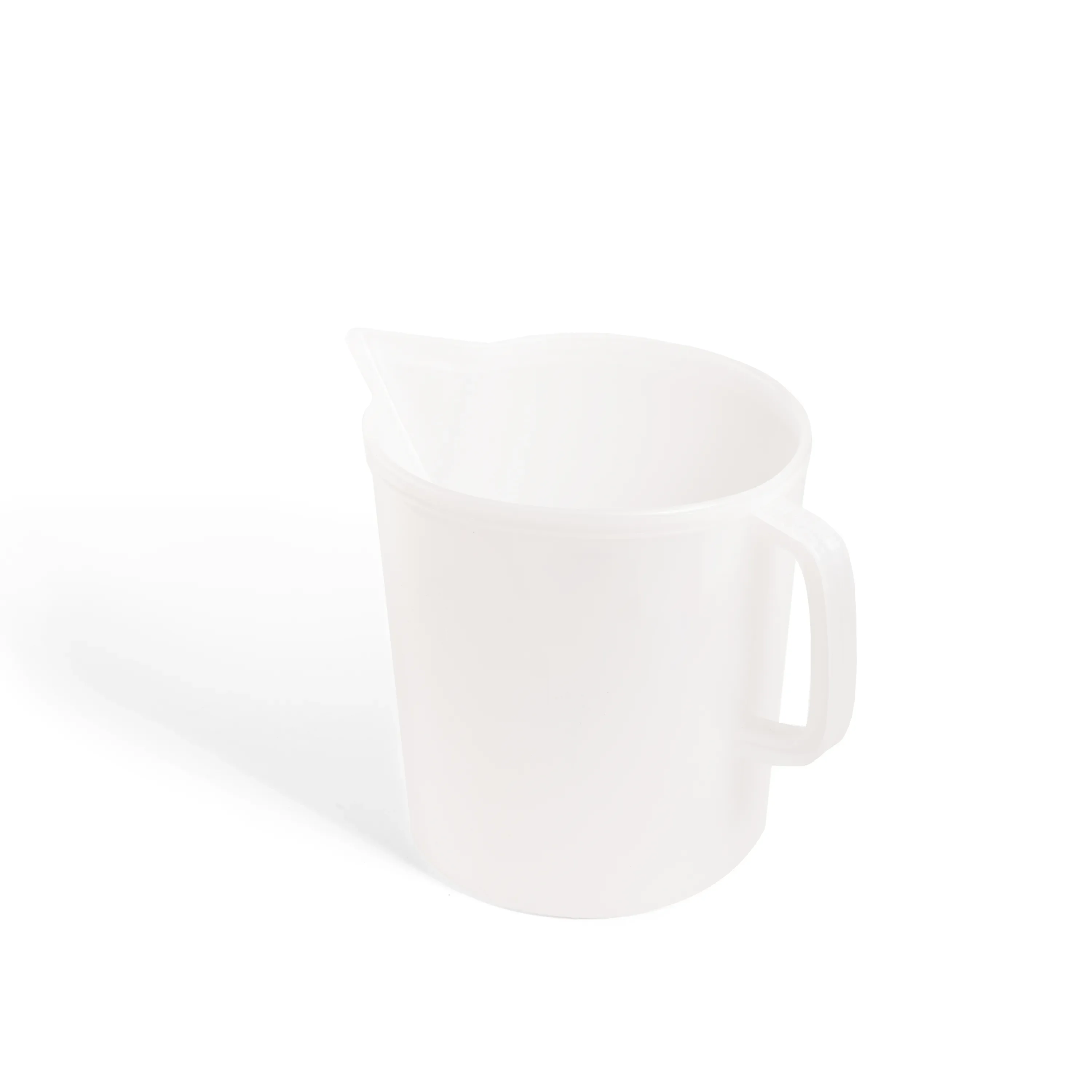Slagtålig mätkanna med rejält handtag och hällpip. In- och utvändig grov halvlitergradering med tolerans på +/- 5 %.